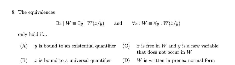 Solved 8 The Equivalences 3x W 3y W Y And Vae W V Chegg Com